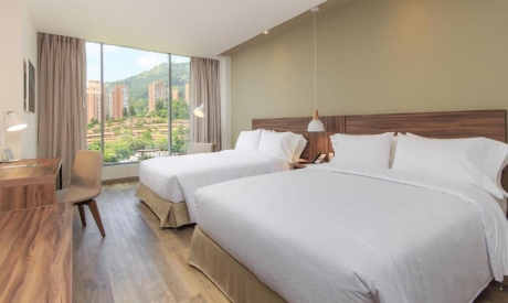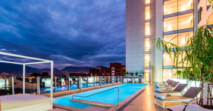 Aquí encontraras una amplia gama de servicios que harán de tu estadía algo inolvidable y nuevas experiencias. Ubicado dentro del Parque Comercial El Tesoro disponen de habitaciones espaciosas, salones de eventos, rooftop, piscina y restaurante. Además de un spa equipado con salas de masajes, salón de yoga y pilates.