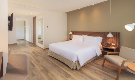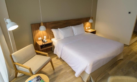 Esta habitación es más amplia y dispone de 1 cama extragrande, cafetera, cortinas opacas, iluminación regulable y escritorio. El baño privado incluye artículos de aseo gratuitos.